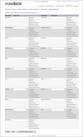 Select or clear the checkboxes as appropriate to indicate whether you would like the address fields to be Required, Visible, and/or Read Only for internal and external users.