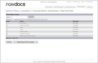 Corporate Print centers can be mapped to specific groups within a Corporate Account. In a case where a system is set up with multiple print centers, users have the ability to select the desired print center when placing their order(s) (if the print center selection feature is enabled in the workflow setup). See page 6-46 for more information on print center settings.