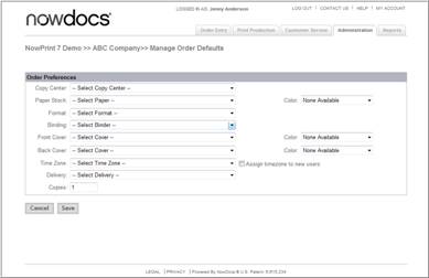 You can specify default ordering preferences for a Corporate Account to save users from having to select the most commonly used settings when placing orders. The selections you choose will automatically be selected by default when orders are placed. However, if a user chooses to make changes during the ordering process, those changes will override the default settings.